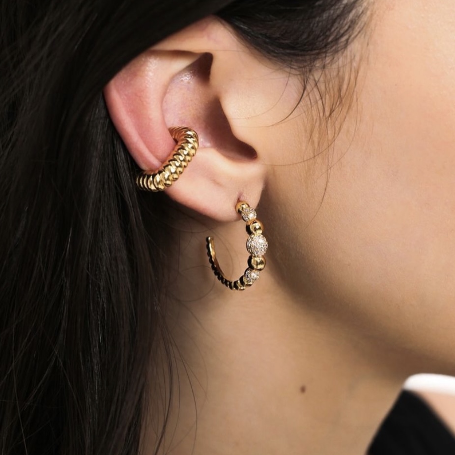 Brinco argola bolas lisas e crav