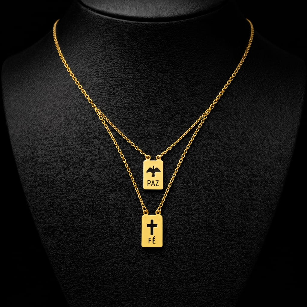 - Escapulário paz e fé dourado